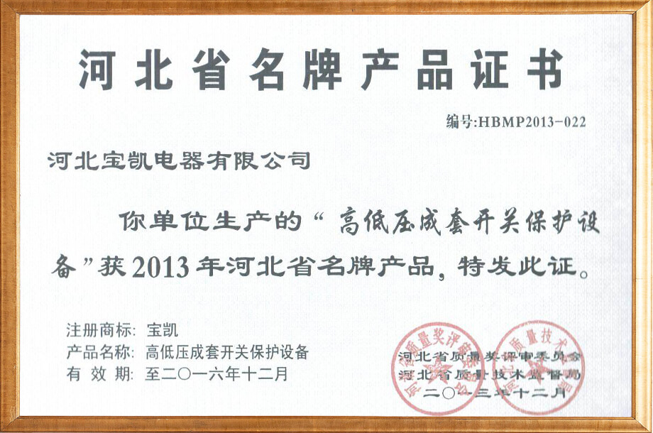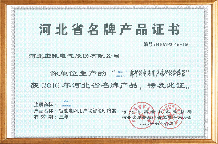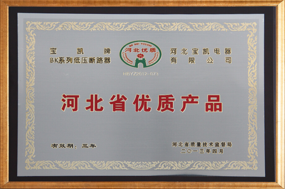 河北優(yōu)質(zhì)產(chǎn)品證書