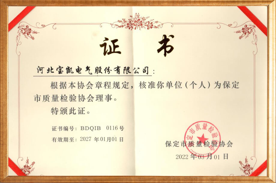 保定市質(zhì)量檢驗(yàn)協(xié)會(huì)理事2022