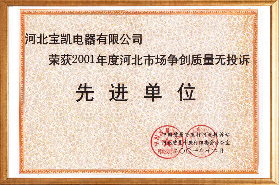 河北市場(chǎng)質(zhì)量無(wú)投訴先進(jìn)單位
