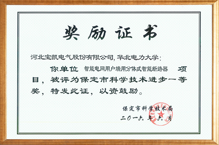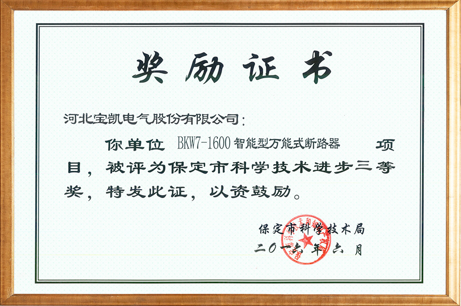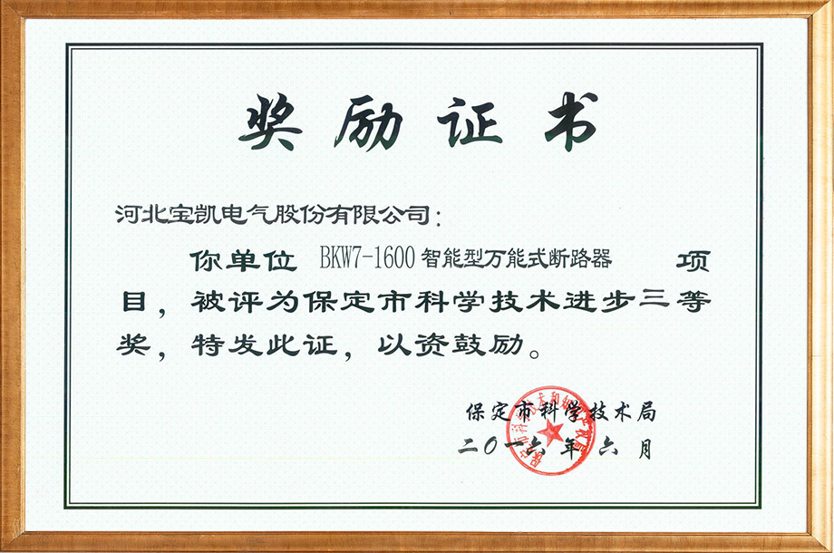 電力物聯(lián)網(wǎng)用智能小型斷路器-科技成果證書
