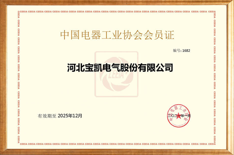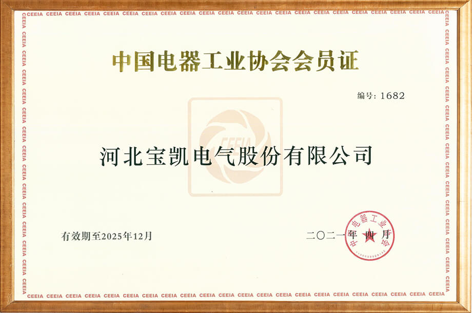 中國(guó)電器工業(yè)協(xié)會(huì)會(huì)員證2021年頒發(fā)