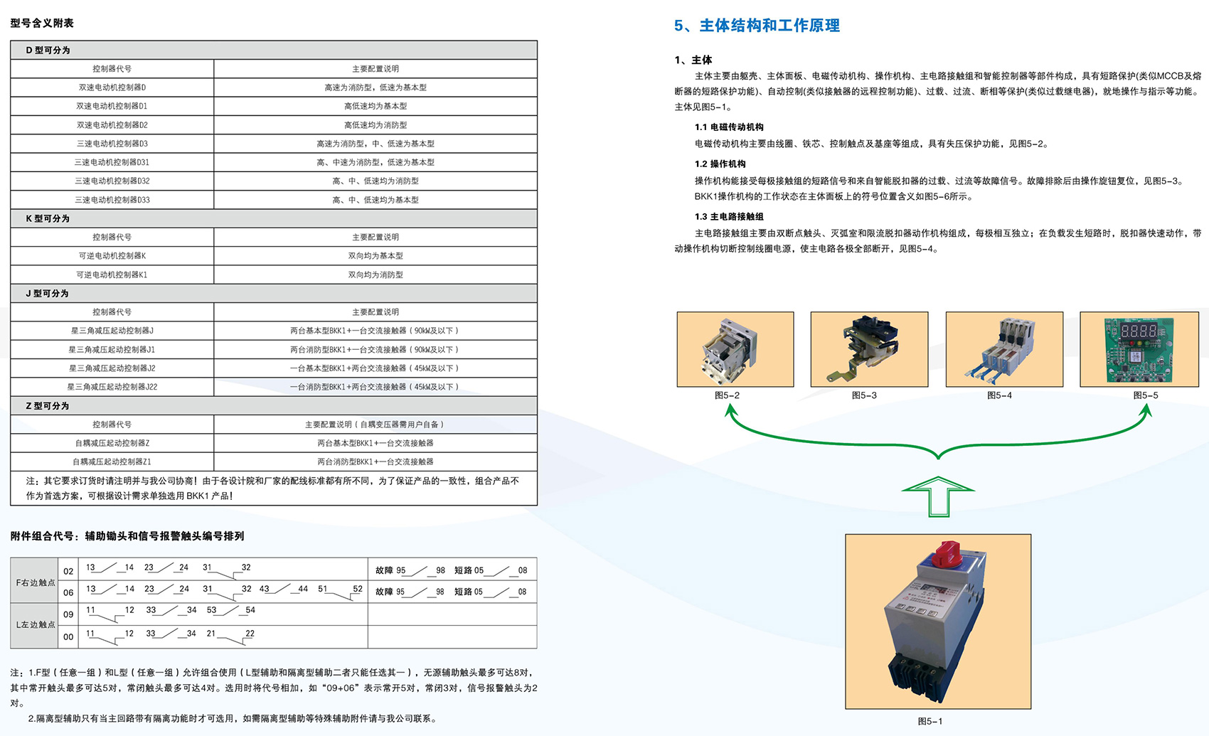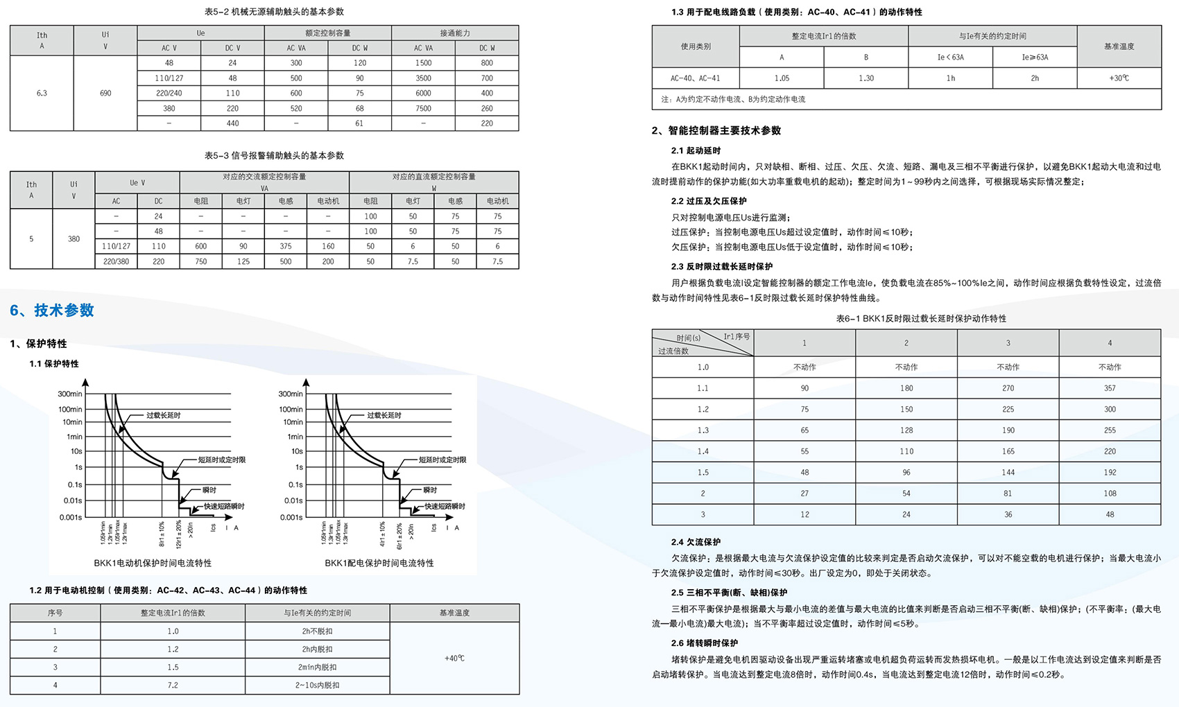 BKK1系列控制與保護開關電器主要用于交流50Hz(60Hz)、額定電壓至690V、額定工作電流自0.4A至125A的電力系統(tǒng)中接通、承載和分斷正常條件(包括規(guī)定的過載條件)下的電流,且能夠接通、承載并分斷規(guī)定的非正常條件(如短路)下的電流。BKK1系列采用模塊化的單一產(chǎn)品結(jié)構(gòu)形式,集成了傳統(tǒng)的斷路器(熔斷器)、接觸器、過載(或過流、斷相)保護繼電器、起動器、隔離器、電機綜合保護器等多種傳統(tǒng)的分離元器件。產(chǎn)品具有遠距離自動控制與就地人力控制兼有的方式進行控制操作的功能,具有協(xié)調(diào)配合的時間-電流保護特性,具有控制與保護自配合、短路后連續(xù)運行,具有分斷能力高,飛弧距離小、壽命長,具有保護整定電流均可調(diào)的特性,操作方便、配套模塊多樣齊全等優(yōu)點,可以實現(xiàn)對電動機負載、配電負載的控制和保護。產(chǎn)品符合GB/T 14048.9《控制與保護開關電器》標準。
