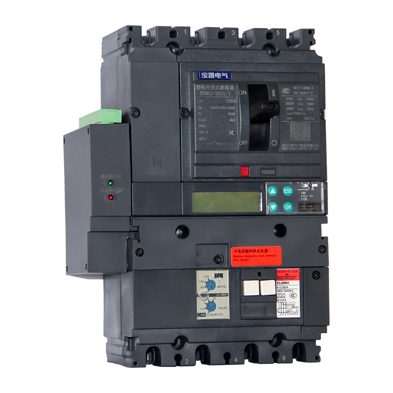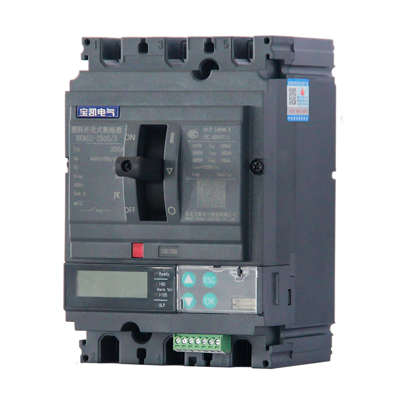 BKM5 系列塑料外殼式斷路器適用于交流50Hz,額定絕緣電壓1000V,額定工作電壓至690V,額定電流12.5A至1600A的配電網(wǎng)絡(luò)中,用來分配電能和保護(hù)線路及電源設(shè)備免受過載、短路、欠電壓等故障的損壞。亦可作為電動(dòng)機(jī)的不頻繁起動(dòng)及過載、短路、欠電壓保護(hù)。加裝Vigi剩余電流保護(hù)模塊的斷路器,只能上進(jìn)線。MIC5.0E智能型斷路器只能上進(jìn)線。其他規(guī)格的斷路器,既可上進(jìn)線,也可下進(jìn)線。本系列斷路器具有隔離功能。本系列斷路器可垂直安裝(即豎裝),亦可水平安裝( 即橫裝)。本系列斷路器執(zhí)行標(biāo)準(zhǔn):IEC 60947-1及GB/T 14048.1 《低壓開關(guān)設(shè)備和控制設(shè)備 第1部分:總則》IEC 60947-2及GB/T 14048.2 《低壓開關(guān)設(shè)備和控制設(shè)備 第2部分:斷路器》IEC 60947-4及GB/T 14048.4 《低壓開關(guān)設(shè)備和控制設(shè)備 第4-1部分:接觸器和電動(dòng)機(jī)起動(dòng)器 機(jī)電式接觸器和電動(dòng)機(jī)起動(dòng)器(含電動(dòng)機(jī)保護(hù)器)》GB/T 22710《低壓斷路器用電子式控制器》
